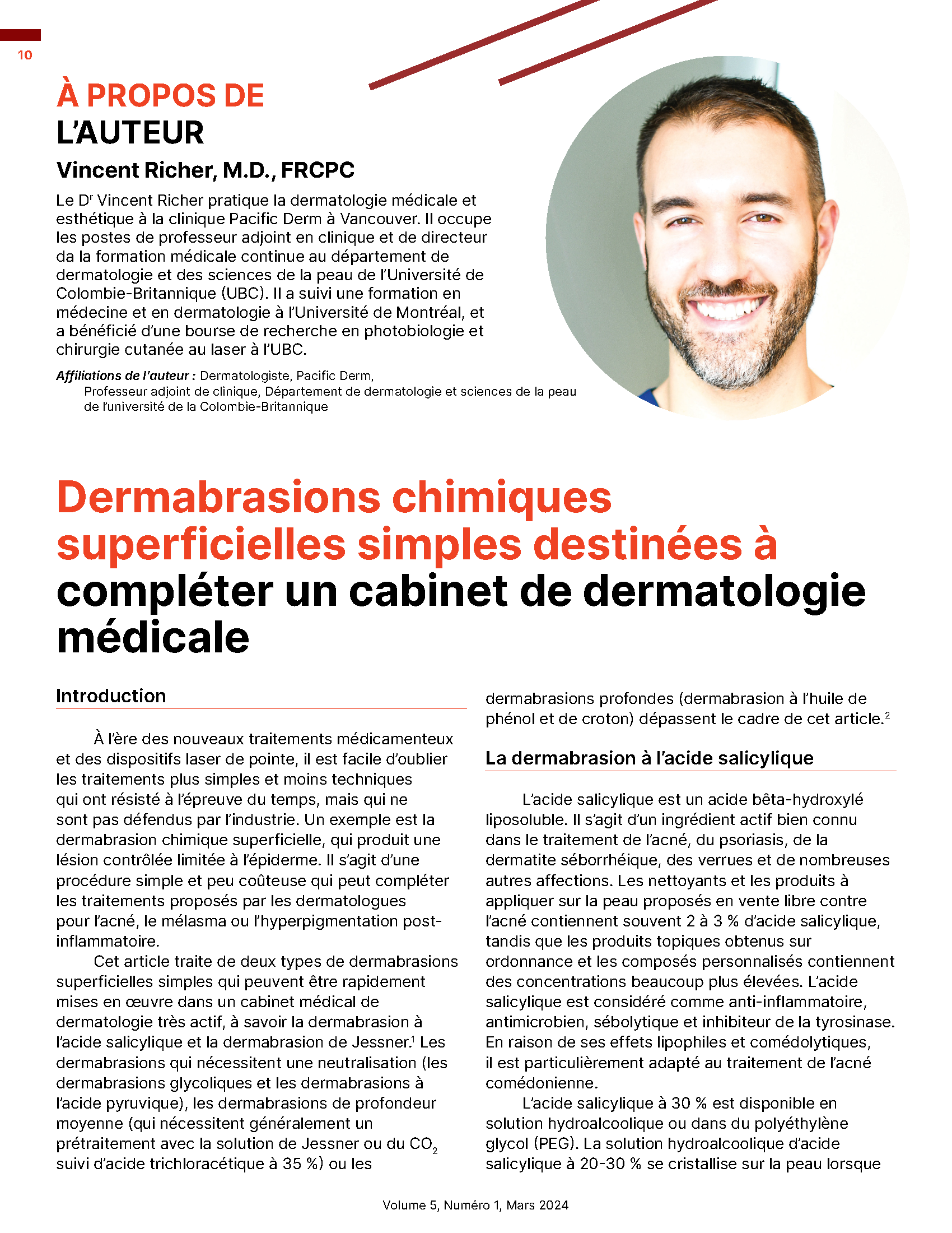 • Dermabrasions chimiques superficielles simples destinées à compléter un cabinet de dermatologie médicale