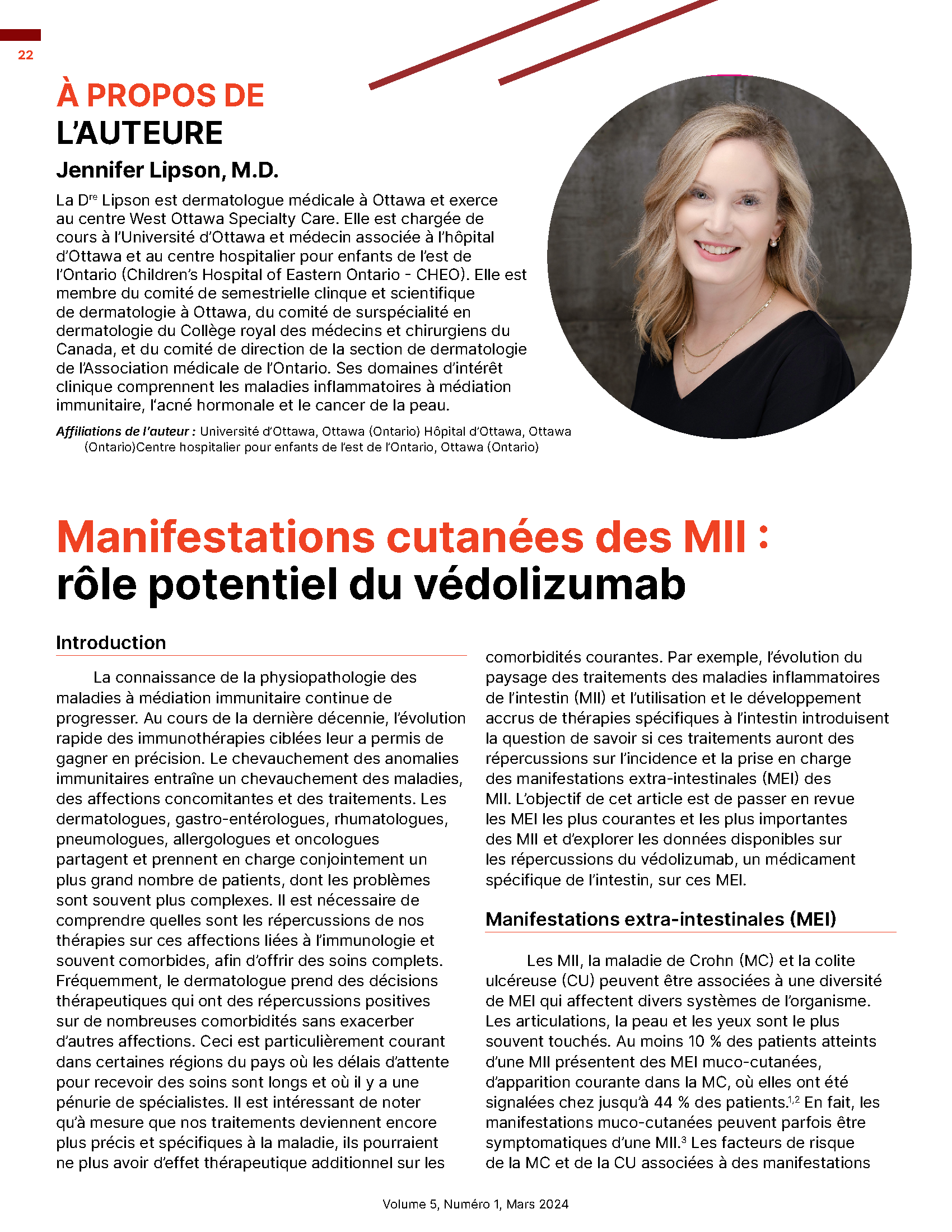 • Manifestations cutanées des MII : Rôle potentiel du védolizumab