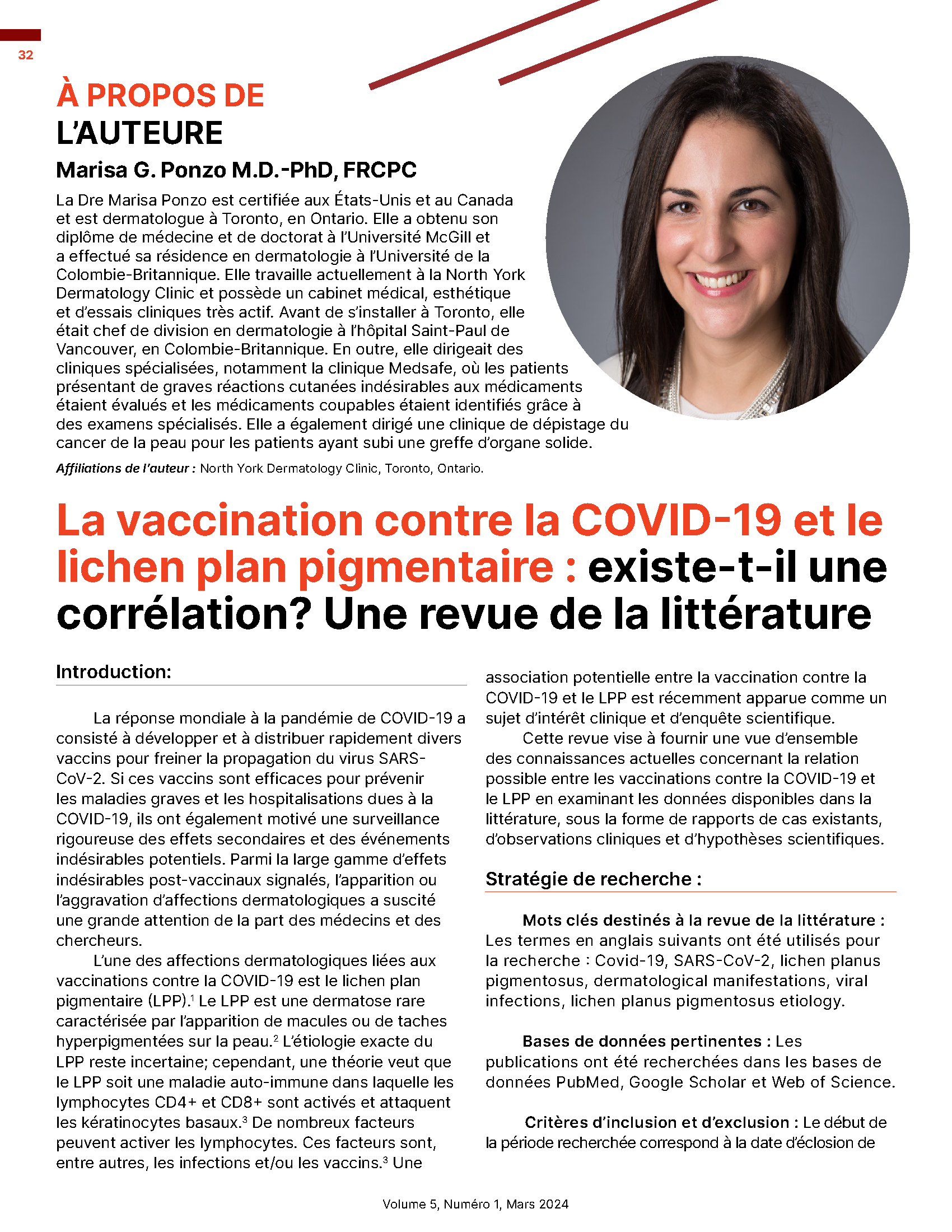• La vaccination contre la COVID-19 et le lichen plan pigmentaire : Existe-t-il une corrélation? Une revue de la littérature
