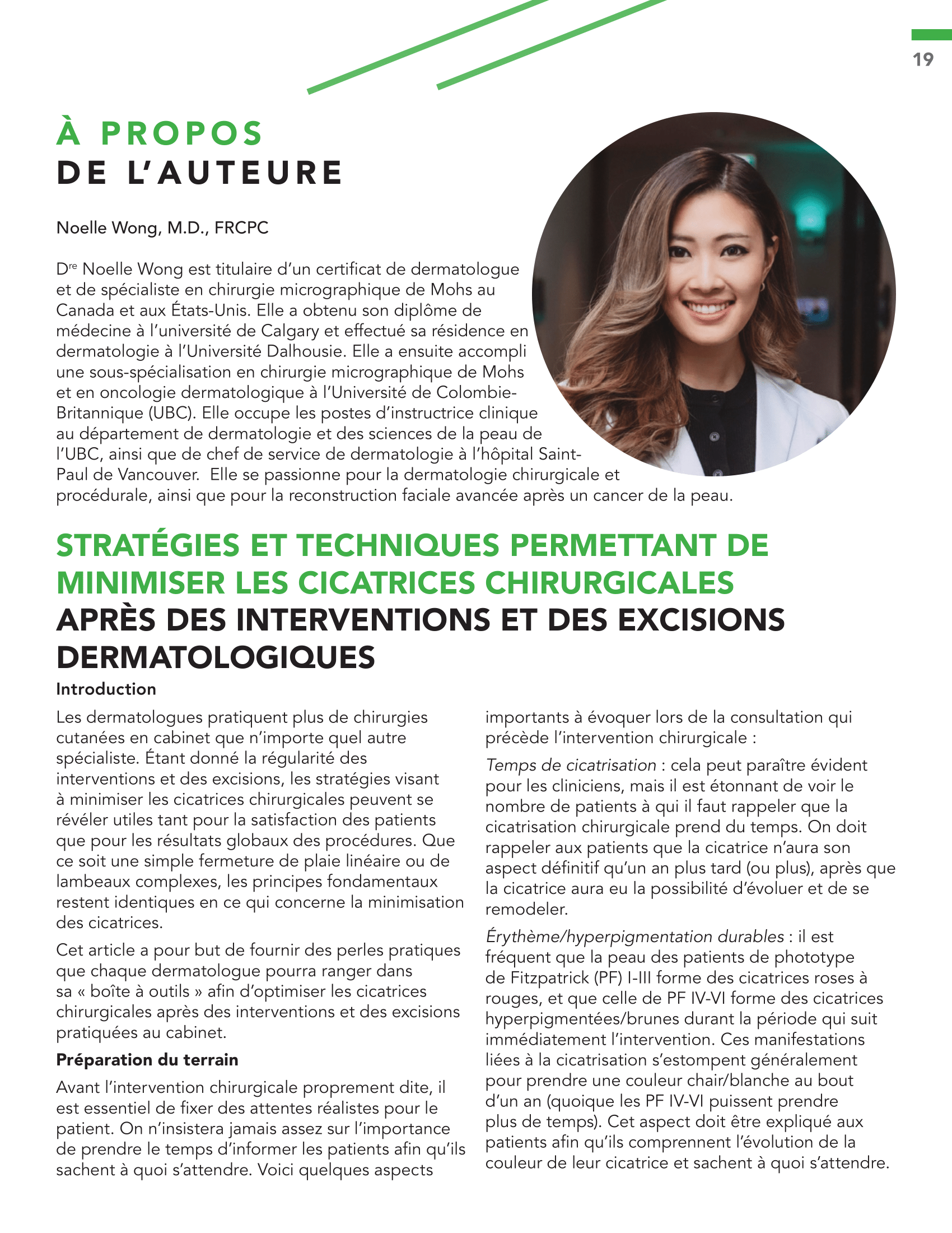 - Stratégies et techniques permettant de minimiser les cicatrices chirurgicales après des interventions et des excisions dermatologiques