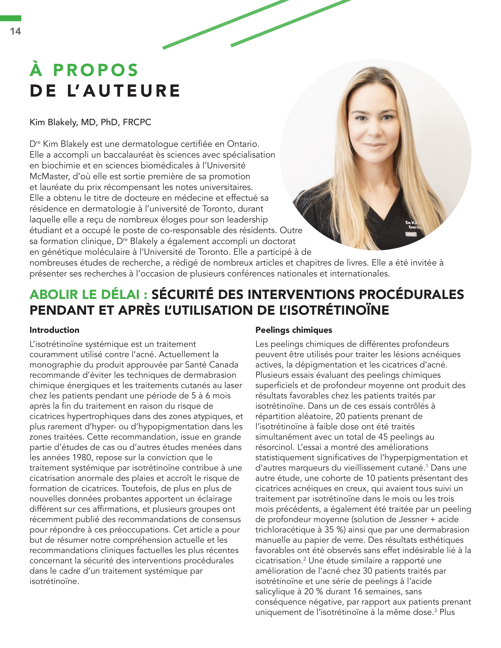- Abolir le délai : Sécurité des interventions procédurales pendant et après l’utilisation de l’isotrétinoïne