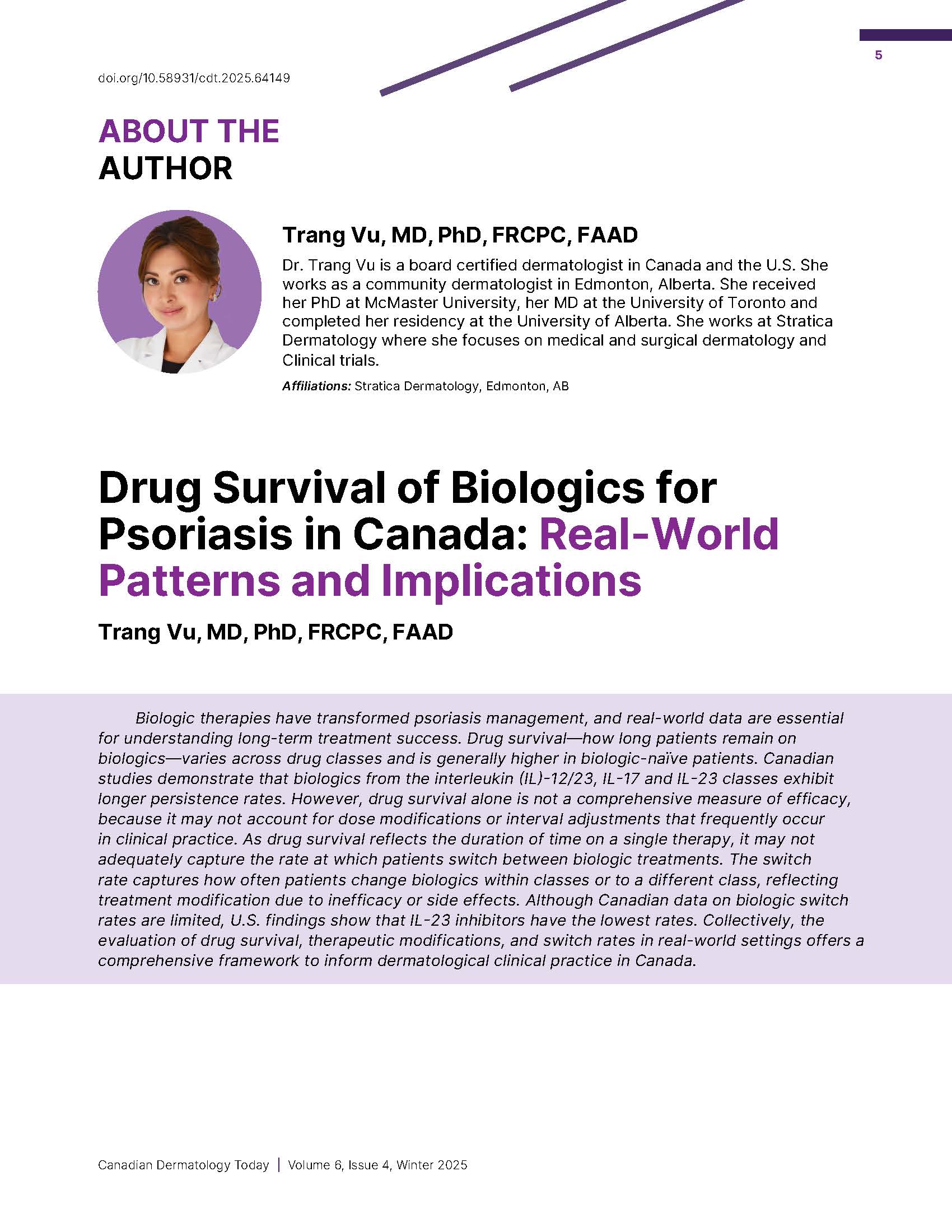 - Drug Survival of Biologics for Psoriasis in Canada: Real-World Patterns and Implications