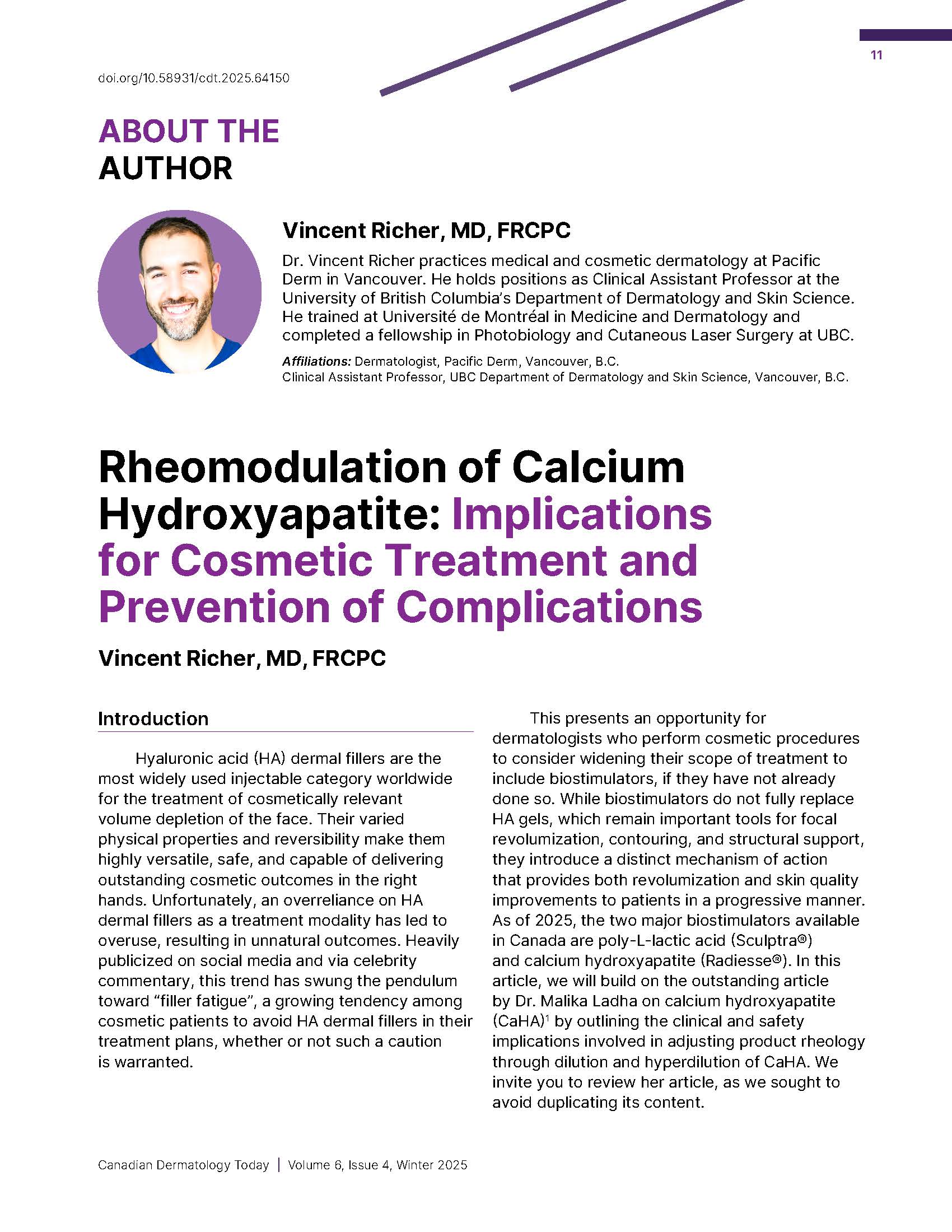 - Rheomodulation of Calcium Hydroxyapatite: Implications for Cosmetic Treatment and Prevention of Complications