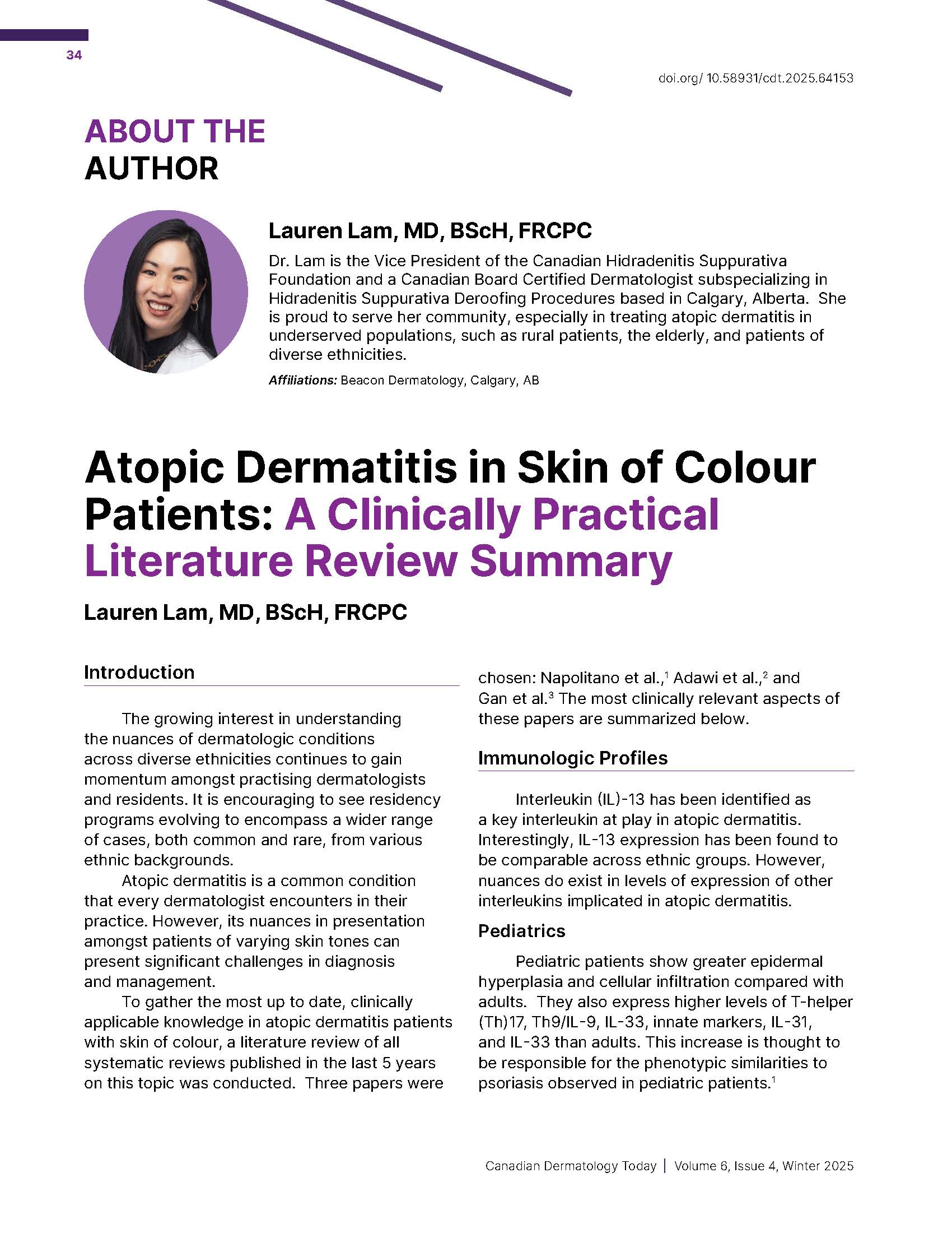 - Atopic Dermatitis in Skin of Colour Patients: A Clinically Practical Literature Review Summary